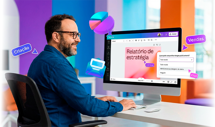 Além de agilizar a produção de conteúdo, o Canva Enterprise oferece controle completo de marca, permissões personalizadas e segurança corporativa, permitindo que gestores e equipes trabalhem com confiança e conformidade. Ao centralizar processos, reduzir retrabalho e facilitar a colaboração, a plataforma ajuda empresas a alcançarem resultados reais de marketing e comunicação, tornando cada investimento em design mais estratégico e impactante.
