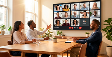 Realize videoconferências seguras e de alta qualidade com até 100 participantes. O Google Meet permite que sua empresa mantenha o alinhamento estratégico através de reuniões fáceis de acessar via navegador ou aplicativo, com compartilhamento de tela e chat integrado para facilitar a troca de informações.